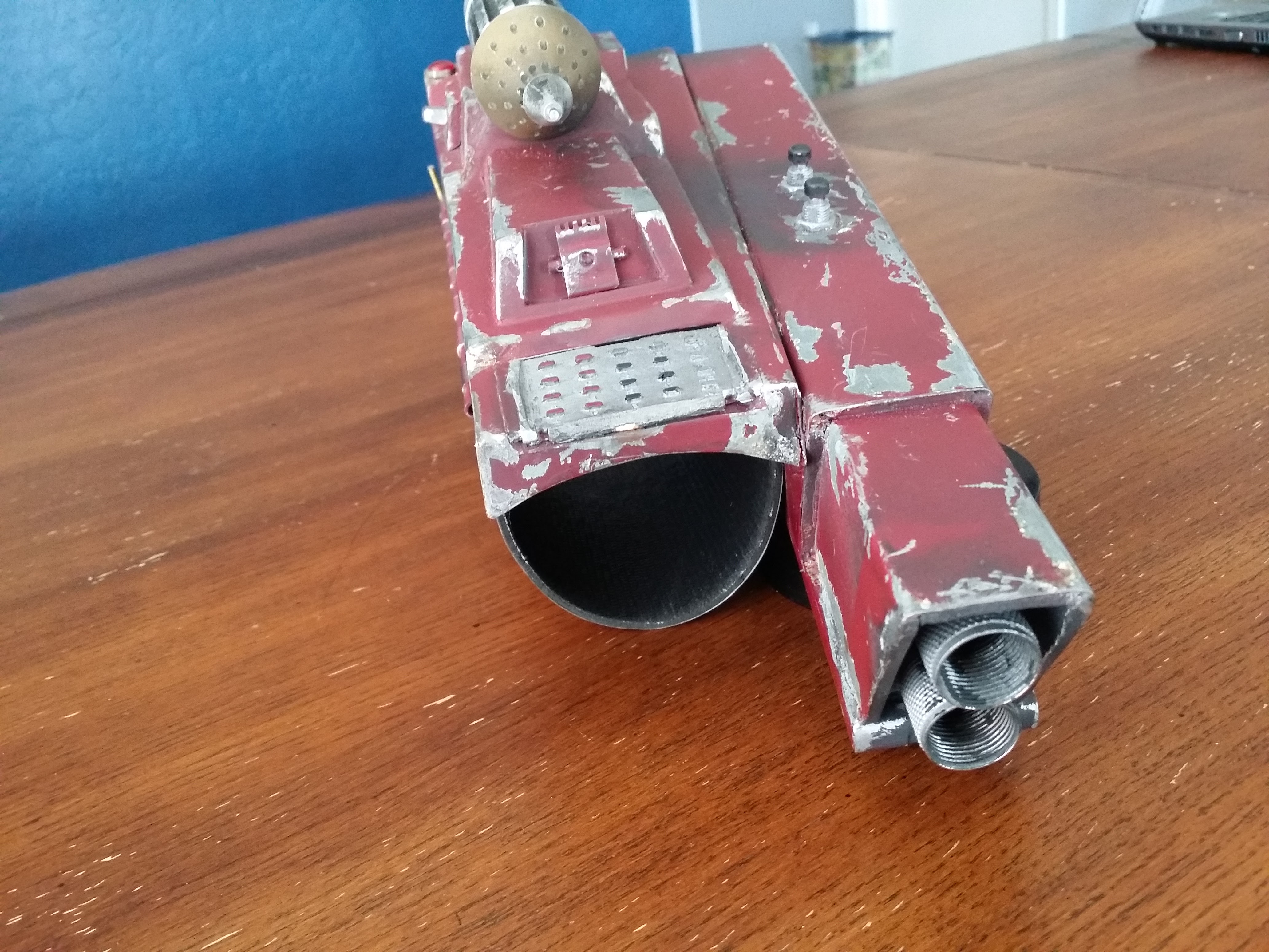 I was able to get a little progress done on the Bo-Katan jetpack while waiting for my silicone to arrive. The jetpack is approximately 13.5" wide.